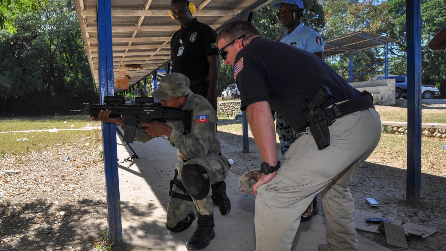 On the firing range of the Académie de Police Nationale d’Haïti in Port-au-Prince, the noise of weapons being fired is heard for miles around... Twenty police officers – some wearing ear-protection – shoot at cardboard targets.