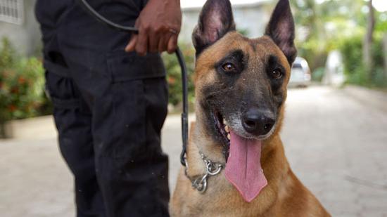 Huit heures du matin dans la cour du BLTS à Tabarre (Port-au-Prince) : après avoir sorti deux des six chiens policiers de leurs chenils, leurs maîtres procèdent à la traditionnelle séance matinale dite d’’obédience’. L’exercice physique d’une trentaine de minutes vise à dégourdir les chiens au réveil, et les préparer pour une journée de travail. Ensuite, cap est mis sur l’aéroport international Toussaint Louverture, dans la capitale haïtienne. Une fois sur les lieux, les chiens guidés par leurs maîtres reniflent tout sur leur passage. Inoffensifs, sans muselière et bien dressés, ils traquent toute possible substance interdite que transporterait tout passager entrant ou sortant sur lui-même ou dans ses bagages, avant la pause bien méritée dont ils bénéficient toutes les 20 minutes.