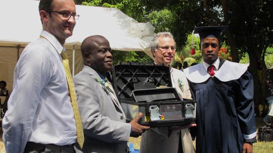 La cérémonie de remise des diplômes de fin de stage s’est déroulée dans une ambiance de fête, regroupant, autour des 120 jeunes et de leurs familles, autorités locales et représentants de la MINUSTAH, dont Luc Duchesne, Chef de cabinet, qui a qualifié ces jeunes «