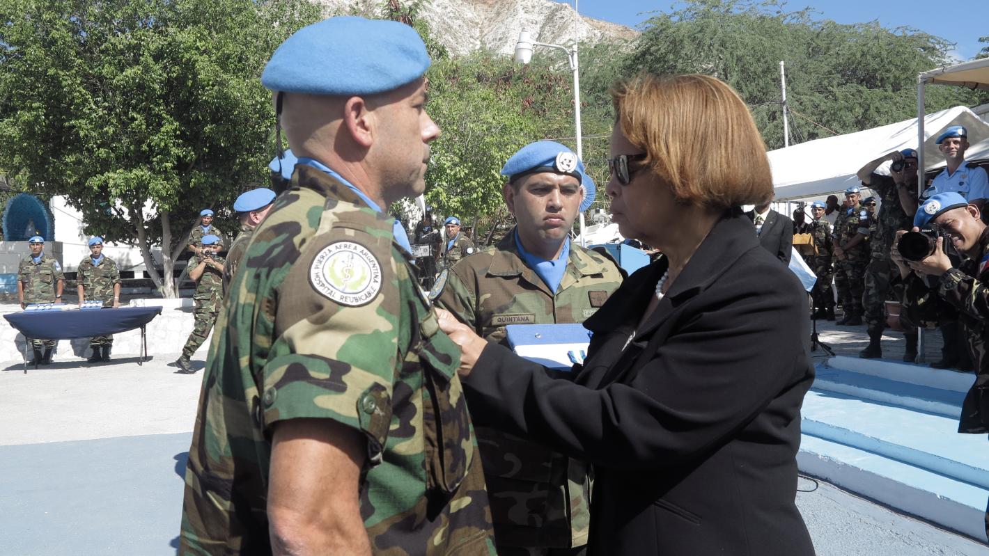 Par ailleurs, Sandra Honoré a présidé, en marge de ces rencontres, une cérémonie de remise de médaille des Nations Unies à 425 militaires argentins déployés dans le département de l’Artibonite.