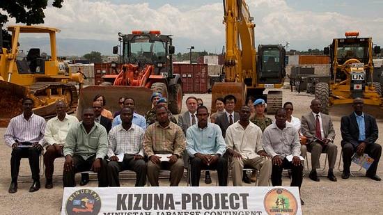 C’est à la demande du Ministère de la Planification et de la Coopération Externe (MPCE) qu’a lieu, depuis le 2 mai 2012 à la base de la Compagnie de Génie Japonaise (JAPENGCOY) de la MINUSTAH, à Port-au-Prince, une formation en maniement d’engins lourds à l’intention de 24 jeunes haïtiens. La formation se déroule dans le cadre du projet « Kizuna » de JAPENGCOY, qui signifie « lien » en japonais, et dont le lancement a eu lieu le mardi 8 mai 2012, en présence du Représentant spécial du Secrétaire général des Nations Unies en Haïti, Mariano Fernández Amunátegui, et d’officiels haïtiens, dont le Directeur général du MPCE, Yves Robert Jean, et de la MINUSTAH.