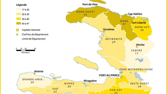 On observe de fortes variations selon le milieu de résidence, notamment dans les zones touchées par des catastrophes naturelles.