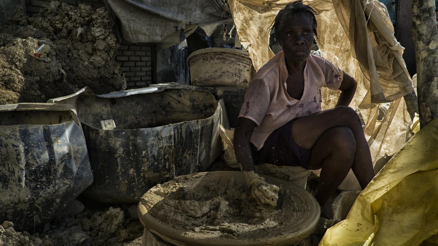 Photo : Logan Abassi - UN/MINUSTAHCertes, Haïti est un pays pauvre. En dépit de cette réalité, des particuliers utilisent parfois des moyens peu habituels pour survivre. C’est le cas de ces fabricants de biscuits d’argile à La Saline, quartier populaire de Port-au-Prince. Assise à même le sol, les pieds allongés sur le macadam, Rosiane Colas, 49 ans, entame la dernière étape de la fabrication de ses biscuits d’argile : les exposer au soleil. Contre son pied gauche s’appuie un récipient à moitié vide pouvant contenir 25 litres. De ce teneur, elle remplit soigneusement une cuillère d’une substance jaunâtre épaisse. Puis elle étale avec adresse sur un long morceau de tissu peu propre, le contenu, dessinant ainsi une forme ronde de deux centimètres d’épaisseurs, sur une superficie qui avoisine celle d’un disque compact. « On a rien à faire ici. La conjoncture est très difficile. Personne ne pense à nous. Donc, nous sommes obligées d’inventer cette activité pour ne pas sombrer dans la misère », explique Rosiane, imperturbable devant l’étalage de sa précieuse terre mouillée. Ici, à l’ombre de l’ancienne prison de Fort-Dimanche où des prisonniers politiques étaient autrefois détenus, dans ce quartier pauvre de Port-au-Prince, le mixage et la vente de la terre argileuse sont pratiqués pour affronter, dans une certaine mesure, l’extrême pauvreté. « J’ai commencé ce commerce en 1997. Un ami me l’a conseillé. Je n’avais pas d’autre issue. Il me rapporte peu, mais je ne peux pas rester sans bouger », raconte Monique, mère de cinq enfants, détachant de ses doigts des résidus du mélange. La marchandise est un alliage d’argile, d’eau, de sel et de beurre. La boue ainsi obtenue est préalablement filtrée dans un morceau de tissu mince. A cette étape, on y extrait le gravier et tout ce qui peut nuire à la finesse de la substance. A cinq gourdes (0,10 dollar américain) pour trois unités, Rosiane et Monique arrivent à peine à gagner 100 gourdes (2,16 dollars américains) sur les 300 gourdes (6.48 dollars américains) dépensées pour l’acquisition des 50 kilogrammes d’argile, la matière première. Alors que Monique et Rosiane continuent leur étalage, à quelques mètres, sous des bâches salles cachant à peine le soleil, une sexagénaire s’assied. Marie Pierre mixte avec sa main droite, la boue en attendant l’espace libre pour faire sécher à son tour ses tablettes au soleil. Comme pour ses collaboratrices, sa journée de travail commence à 5h00 du matin depuis 2001. Elle explique ses motivations et les difficultés qu’elle rencontre pour produire et vendre ses biscuits d’argile. L’endroit où sont exposées les tablettes au soleil est loin de respecter les normes élémentaires d’hygiène. L’ancien terrain de basket de l’institution mixte La Saline est entouré d’eau puante de couleur verdâtre. Des ordures de toutes sortes, dégageant une odeur nauséabonde, font les délices des porcs et des chiens qui viennent de temps en temps rendre une petite visite. Pourtant, les tablettes en terre cuite, comme n’importe quel biscuit, vont être consommées. « En général, bon nombre de femmes enceintes en raffolent. J’avoue, d’autres personnes les dégustent, compte tenu de leur situation de vulnérabilité. D’autant plus que les tablettes ne coûtent pas chères. A cause de la margarine et du sel contenus dans les plaquettes d’argile, quelqu’un qui en consomme va certainement sentir le besoin de boire une bonne quantité d’eau. Ce qui aura la vertu de calmer sa faim », admet Serandieu Jonas, un jeune du quartier, un peu embarrassé. « On dit que des particuliers les achètent pour faire des assiettes et des bibelots qui seront vendus en République Dominicaine », renchérit Loubens, 27 ans, dont la maman est impliquée dans le commerce des tablettes en argile. Les jeunes hommes discutent encore entre eux alors que les femmes continuent à travailler. Des centaines de plaquettes d’argile sont déjà alignées au soleil. Elles doivent être séchées et ramassés pour ensuite être vendues sur le marché. « Si la pluie vient, on va tout perdre », lâche madame Pierre, inquiète. En fait, toutes les tablettes vont se fondre pour redevenir de la boue et couler dans les marres d’eau d’à côté. Rédaction : Jean-Etiome Dorcent - UN/MINUSTAH
