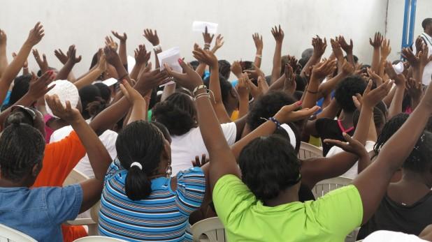Des cris de joie, des groupes de danse, des défilés de mode, des discours, des prières mais aussi des pleurs à la prison des femmes à Pétion-Ville, à l’occasion de la journée internationale de la femme ce samedi. Les 267 détenues ont eu une longue recréation alors que d’ordinaire elles n’ont qu’une petite heure.
