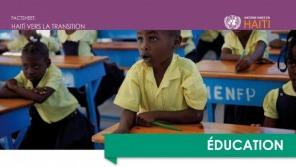 The education sector faces many challenges, due to the lack of public infrastructures, the often prohibitive non-public school fees, and the uneven distribution of schools throughout the country. However, over the past years, important progress was made, notably regarding attendance to primary school. The UN works with the Government of Haiti to continue increasing children’s access to school, regulate the education system, abolish education fees, and define quality standards for state and non-state service providers. EducationLe secteur de l’éducation est confronté à de nombreux défis, dus aux lacunes en matière d’infrastructures publiques, de frais d’inscription souvent prohibitifs dans les établissements privés et d’une répartition souvent déséquilibrées des écoles dans le pays. Toutefois, ces dernières années, des progrès importants ont été réalisés, particulièrement en matière d’accès à l’éducation primaire. Les Nations Unies travaillent avec le gouvernement d’Haïti pour poursuivre ces efforts, harmoniser le système d’éducation, abolir les frais de scolarité et définir des normes qualitatives pour les professionnels étatiques et non-étatiques du secteur. Education_Fr