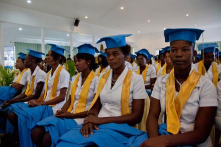 96 jeunes femmes et quatre hommes des quartiers sensibles de Port-au-Prince ont reçu aujourd'hui leur diplôme en couture manuelle et industrielle après six mois d'étude. Photo : Jesus Serrano Redondo – UN/MINUSTAH « Grâce à cette formation, je suis en mesure de confectionner mes propres vêtements et…
