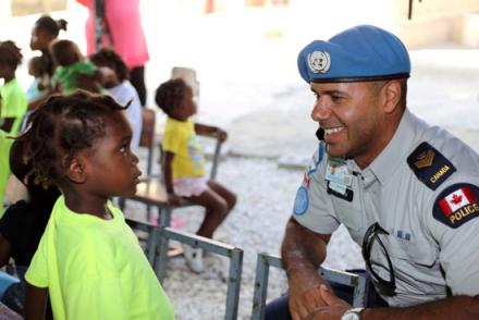 12 policiers canadiens ont collecté 10.000 dollars US en faveur d’un centre d’accueil pour enfants dans la capitale haïtienne. Lors d’une journée récréative le 20 janvier dernier, les policiers de la MINUSTAH ont cuisiné un repas pour ces enfants défavorisés. Photo : Mélanie Malenfant - UN/MINUSTAH…