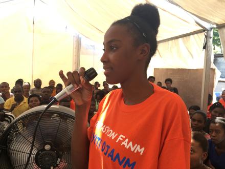 Photo : Marie Yolette B. Daniel - UN/MINUSTAH « Prôner la participation des femmes requiert des réflexions approfondies notamment sur les multiples barrières qui freinent fatalement l’élan des femmes », argumente Duval Darline, une résidente de Carrefour-Feuille, quartier populaire de Port au prince…