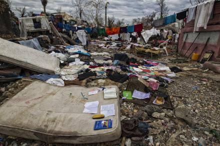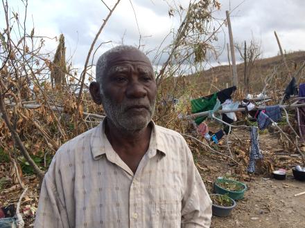 Marie Yolette B. Daniel - UN/MINUSTAH Assis sur le tronc d’un arbre au beau milieu des branches cassées et des décombres de ce qui étaitsa maison il y a 8 jours, Rophil Michel, 75 ans observe de son regard torve l’atterrissage des avions légers et hélicoptères suivi de convois des équipes de secours…