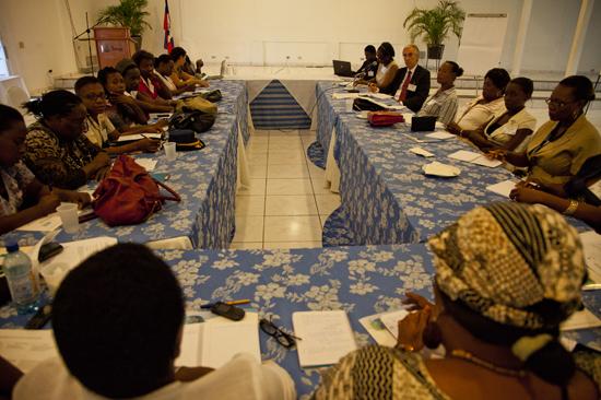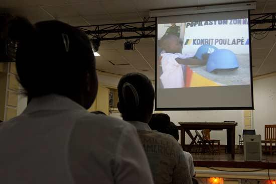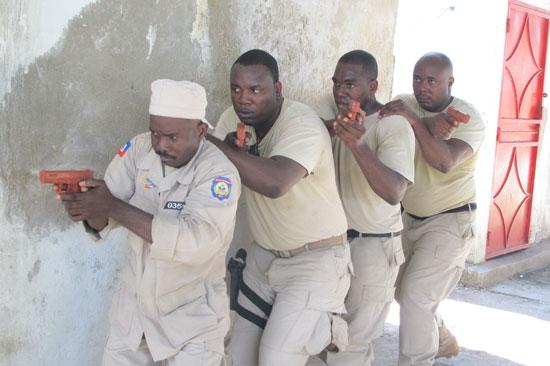 Ce mois-ci, deux formations des policiers de l’Artibonite aux techniques d’intervention et aux droits de l’homme, ont été l’occasion d’évoquer la nécessité pour la Police Nationale d’Haïti de pérenniser les acquis, en devenant à son tour formatrice. Photo : Taïna Noster – UN/MINUSTAH « Les policiers…
