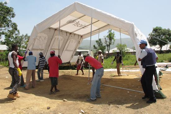 Photo : Louicius Micius Eugène – UN/MINUSTAH Suite à la tempête tropicale Isaac qui a traversé Haïti le week-end passé, la MINUSTAH a facilité ce 30 août le remplacement de la tente abritant l’Unité de Traitement du Choléra (UTC) de Tilory, une commune reculée de la section communale Cerca la Source…