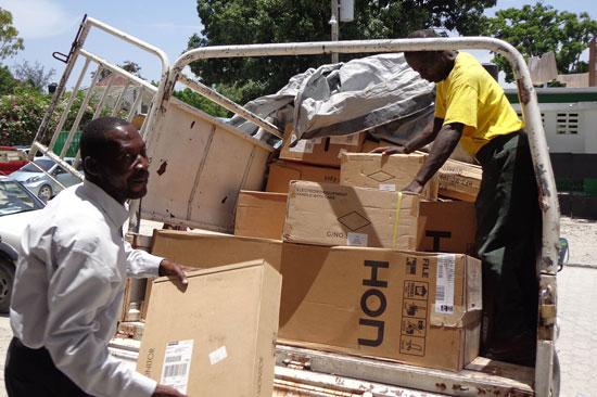 Dans le cadre du soutien de la MINUSTAH aux autorités haïtiennes, deux camions-bennes appartenant à la Mission, prêtent main forte depuis le 4 juillet aux équipes de ramassage d’ordures de Port-au-Prince pour débarrasser certaines rues des fatras, ordures et déchets. Photo : UN/MINUSTAH L’opération…