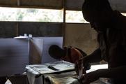 Photo: Pierre Jérôme Richard - UN/MINUSTAH Sur un trottoir au Boulevard Jean Jacques Dessalines prolongé, juste en face de la Direction centrale de la Police judiciaire, DCPJ, non loin de l’Aéroport International Toussaint Louverture, à Port-au-Prince, un “studio” photo s’improvise. Son objectif…