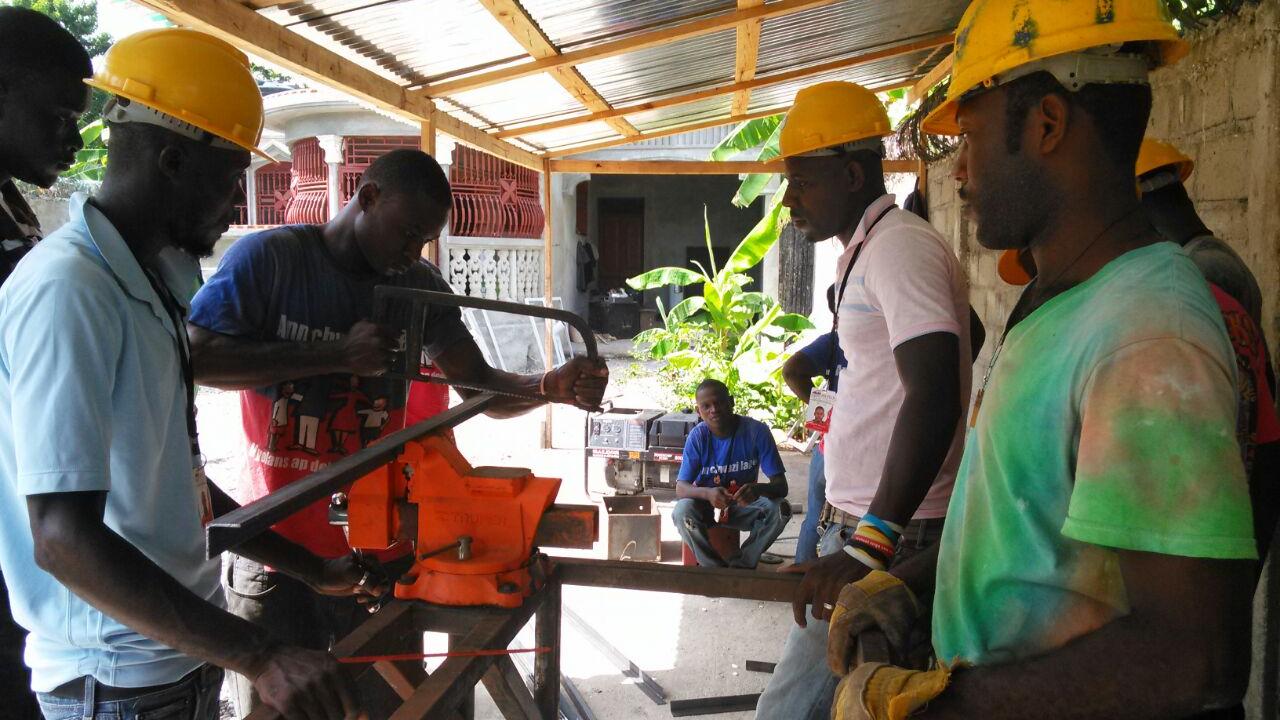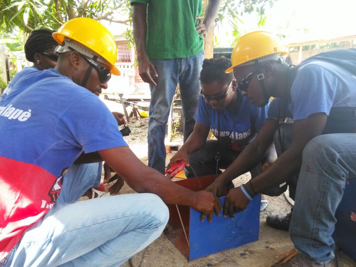 Dans cet atelier d’assemblage, situé dans le quartier de Bonnay Dugal, commune de Quartier Morin, à 5 minutes de route du centre-ville de Cap-Haitien, 25 jeunes s’affairent à la soudure, la peinture et au montage de panneaux solaires photovoltaïques.