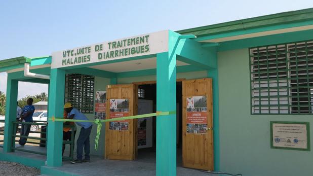 Four Centres for treatment of acute diarrhoea (CTDA – acronym after the French Centres de traitement des diarrhées aiguës) were inaugurated in the department of Artibonite, on March 13th, 2014. These structures are destined to strengthen the fight against cholera in the Central Department, where the first cases of cholera were recorded in 2010. Work on the project began in July 2013... Workers dug the moist soil around the Health Centre of Reference of the commune of Estère. They must also implement – in Dessalines, Desdunes and Gros-Morne (three other municipalities in the Department) - other Centres to deal with acute diarrhoea. At the time of the initial ground-breaking, the Interim Agent at Estère, Michelet Jean Jacques, stated: "The people of this region must have a safe place to be treated." After five months of work, the first Centre is ready to open its doors. This CTDA will become an "indispensable tool" in the fight against cholera says Donald François, Coordinator of the National Plan to Eliminate Cholera in the Department of Public Health. Referring to the first emergency facilities in the area, François remembers"that I was here – somewhere under a tent – and medical staff struggled to care for the population... This building is the first link in a chain that continuously struggles against the epidemic" he states. For his part, the Regional Director of the Department of Public Health, Robert Honoré welcomes the construction of the Centres. "This is a project that meets the Ministry's vision in the battle against the epidemic," he says. Moreover, Honoré urges the population to observe good hygiene practices, such as hand washing. For Grégoire Goodstein, head of the International Organization for Migration (IOM) in Haiti, one thing is sure: "The construction of these CTDA helps support the Haitian government's 10-year plan to eliminate cholera." He commends the cooperation between IOM, MINUSTAH and the health authorities. "This project is the result of a shared vision, and is supported by a multitude of partners," he added. Indeed, the Community Violence Reduction (CVR) section of MINUSTAH funded the works to the tune of 400,000 U.S. dollars. IOM has assured the project's execution. In addition to actual construction, the project has trained 495 health professionals working in the management of cholera. Nearly 303,200 people were targeted in the context of a broad awareness campaign. In addition, 30,000 others have increased access to safe drinking water through the repair and construction of appropriate infrastructure. Such intervention has created 508 temporary jobs in the areas of project implementation. "I reiterate the commitment of MINUSTAH to continue to assist local authorities in the fight against cholera," states Narhebat Nancaïa Intchasso, Head of the Regional Office of MINUSTAH in Artibonite. Jean-Etiome DORCENT-UN/MINUSTAH Quatre Centres de traitement des diarrhées aiguës (CTDA) ont été inaugurés dans le département de l’Artibonite, le 13 Mars 2014. Des structures destinées à renforcer la lutte contre le choléra dans ce département, où les premiers cas avaient été enregistrés en 2010.