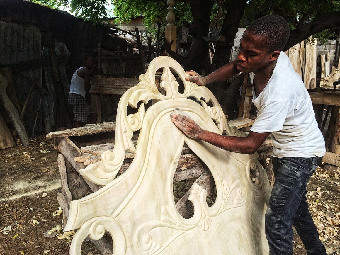Aux Gonaïves, une rue entière, la rue « cité résidentiel « est dédiée à l’exposition de meubles en bois. Salle à manger, chiffonnier, placards, lits en bois massif, mobiliers de bureau etc. Fabriqués manuellement à l’aide d’outils conventionnels, on peut parer sa maison, orner son bureau sans chercher plus loin. Mais à quel Prix…