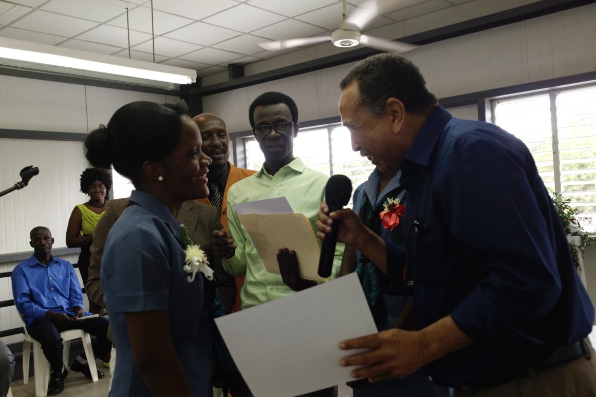 « Je me sens vraiment contente de recevoir ce diplôme. Je n’ai jamais cru pouvoir réaliser ça en quatre mois ! « Déclare Dereste Doudlie lauréate de sa promotion d’opérateurs de machines à coudre industrielle, coupe couture domestique et placement en usine. Elle décrit ses émotions suite à la réception de son certificat.