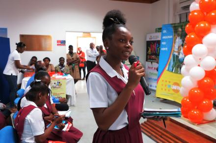 Photo : Louicius Micius Eugène – UN/MINUSTAH Port au Prince, le 3 decembre, 2015 – « J’ai découvert plein de choses durant cette Session. Je sais désormais que j’ai un rôle à jouer pour changer mon pays », a confié Cassandra, une malentendante, arborant un grand sourire. Cette fille de15 ans, élève…
