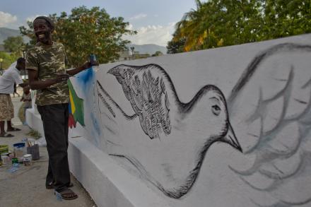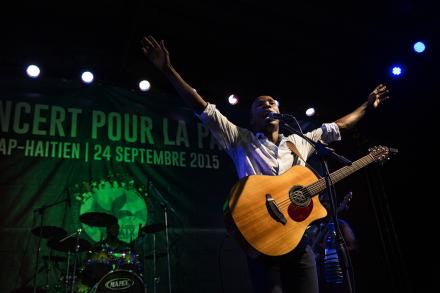 Photo : Logan Abassi - UN/MINUSTAH Dans toute la ville, cornets, tambours et chants de 5 raras annoncent la nouvelle du jour – Le concert de la Paix se tiendra ce jeudi 24 Septembre… Les joyeux défilés dansant finissent donc par converger sur l’Esplanade du bord de mer de Cap Haitien ; il s’agit de…