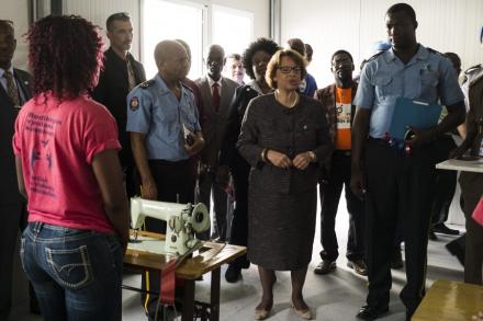 Photo : Logan Abassi – UN/MINUSTAH «Depuis 7 ans, notre plus grand rêve a été de transformer la prison civile de Cap-Haïtien en un centre de réinsertion sociale, afin d’assurer un avenir aux détenus qui auraient purgés leur peine », a indiqué Romage Malon, inspecteur divisionnaire et chef du centre…