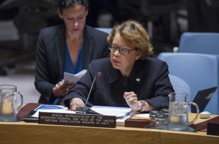 UN Photo/Amanda Voisard 8 octobre 2015 – A l’occasion d’une réunion du Conseil de sécurité de l’ONU sur Haïti, la Représentante spéciale du Secrétaire général des Nations Unies pour ce pays, Sandra Honoré, a noté jeudi le climat sécuritaire relativement serein dans lequel se déroule les élections en…