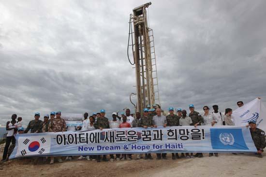 1.200 familles d’ONA-ville, dans la commune de Croix-des-Bouquets, au nord de Port-au-Prince, ont pour la première fois accès à de l’eau potable, après le forage d’un puits. Photo : UN/MINUSTAH « Ce puits va nous aider non…