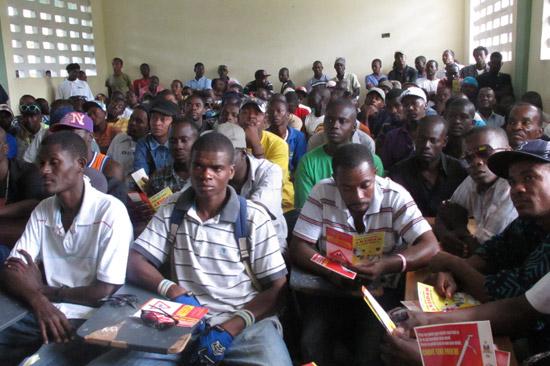 Photo : Jean Kechnord Edmond - UN/MINUSTAH Plus de 300 chauffeurs de taxi-moto de la commune d’Aquin (Sud) ont été sensibilisés à la sécurité routière ce dimanche 4 février. Le responsable départemental du Bureau de la circulation de la Police Nationale d'Haïti (PNH) et le directeur de l’autoécole d…